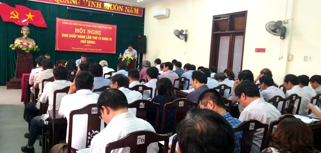 HNN.VN - Sáng 17/7, Đảng ủy Khối các Cơ quan tỉnh tổ chức Hội nghị Ban Chấp hành Đảng bộ Khối lần thứ 13, khóa VI (mở rộng) để sơ kết hoạt động 6 tháng đầu năm, triển khai nhiệm vụ 6 tháng cuối năm 2018; thảo luận, cho ý kiến về dự thảo báo cáo tổng kết 10 năm thực hiện Chương trình hành động về tăng cường công tác kiểm tra, giám sát (KTGS) của Đảng; báo cáo 10 năm thực hiện chương trình hành động về nâng cao năng lực lãnh đạo, sức chiến đấu của tổ chức Đảng và chất lượng đội ngũ cán bộ, đảng viên...