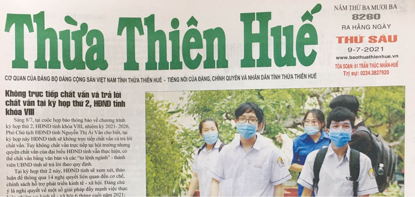 Bài viết đăng trên Thừa Thiên Huế số 8260 ra Thứ sáu ngày 9/7/2021