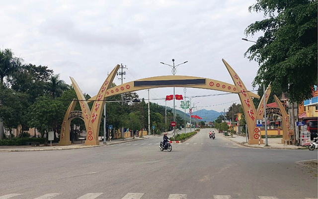 Cờ Đảng, cờ Tổ quốc, băng rôn chào mừng đại hội Đảng được treo trên các tuyến đường chính ở trung tâm huyện Nam Đông