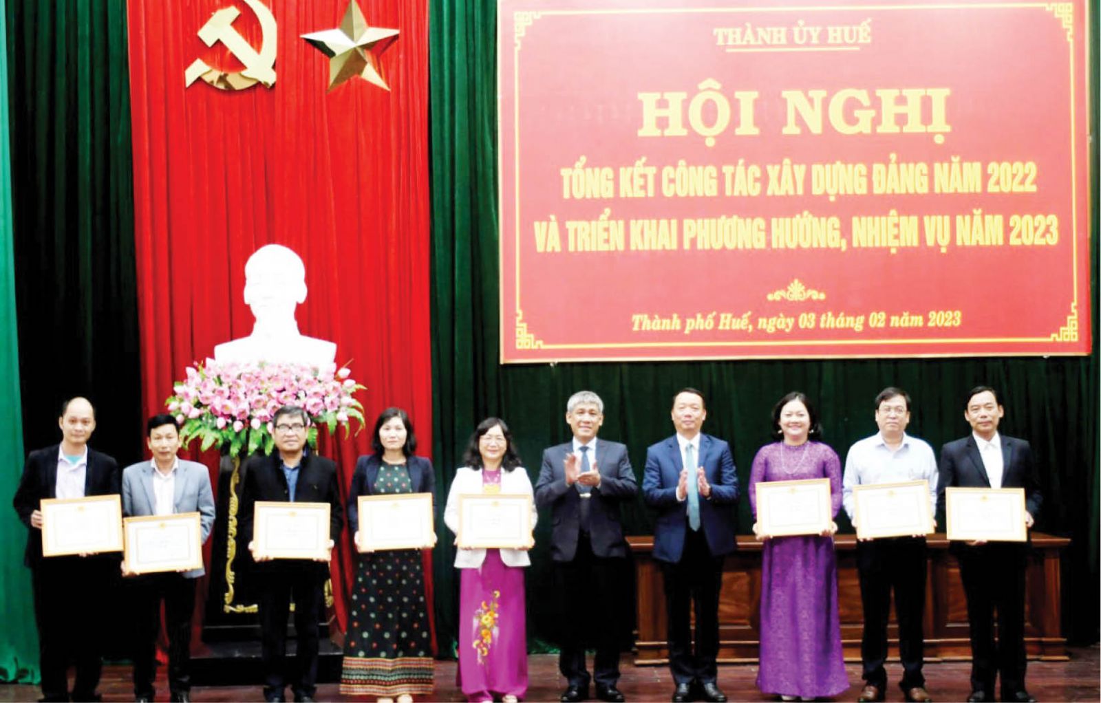 Lãnh đạo Thành ủy Huế trao giấy khen cho các tập thể và cá nhân có thành tích xuất sắc trong năm 2022