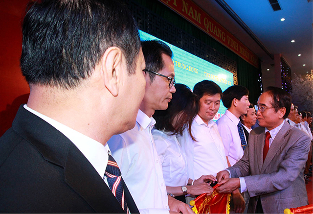 Phó Bí thư Thường trực Tỉnh ủy Bùi Thanh Hà trao cờ lưu niệm cho các đội thi tại Hội thi Báo cáo viên giỏi toàn quốc do Ban Tuyên giáo Trung ương và Tỉnh ủy Thừa Thiên Huế phối hợp tổ chức. Ảnh: Anh Phong