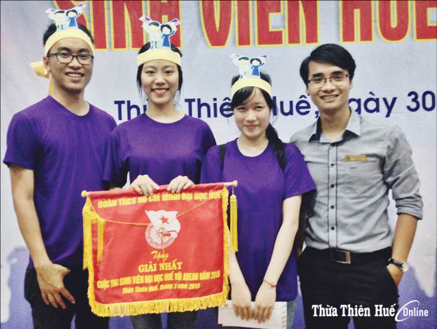 Ánh Minh (thứ ba từ trái sang) cùng đồng đội đoạt giải nhất cuộc thi Sinh viên Huế với ASEAN (năm 2015)