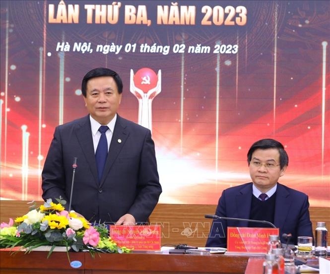 GS.TS Nguyễn Xuân Thắng, Ủy viên Bộ Chính trị, Giám đốc Học viện Chính trị quốc gia Hồ Chí Minh, Chủ tịch Hội đồng Lý luận Trung ương, Phó Trưởng Ban Chỉ đạo 35 Trung ương phát biểu chỉ đạo và phát động cuộc thi. Ảnh: Văn Điệp/TTXVN