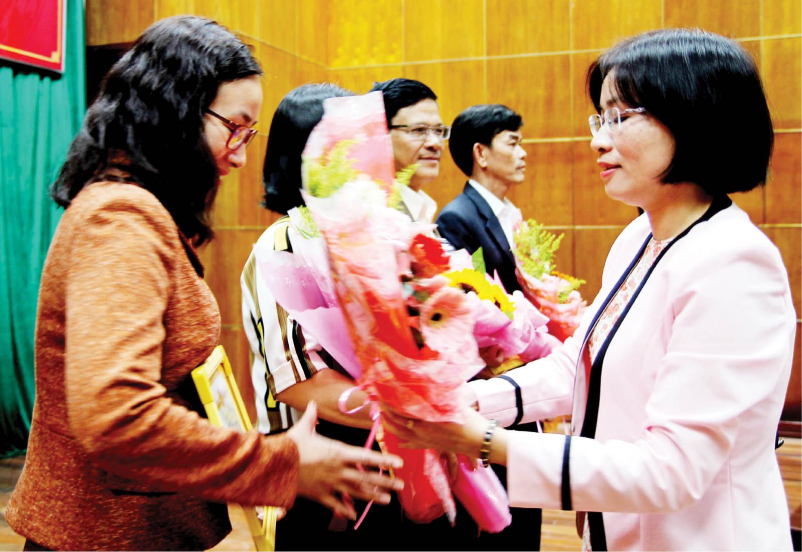 UVTV Tỉnh ủy, Chủ nhiệm UBKT Tỉnh ủy Phạm Thị Minh Huệ khen thưởng các đơn vị làm tốt công tác kiểm tra, giám sát năm 2020