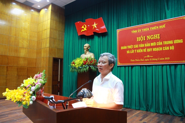 Phó Bí thư Thường trực Tỉnh ủy Bùi Thanh Hà quán triệt Chỉ thị 27 của Bộ Chính trị về tăng cường sự lãnh đạo của Đảng đối với công tác bảo vệ người phát hiện, tố giác, người đấu tranh chống tham nhũng, lãng phí, tiêu cực; Chỉ thị 28 của Ban Bí thư Trung ương Đảng về nâng cao chất lượng kết nạp đảng viên và rà soát, sàng lọc, đưa những đảng viên không còn đủ tư cách ra khỏi Đảng; Kết luận 43 của Ban Bí thư về tiếp tục thực hiện Nghị quyết 25 của Ban Chấp hành Trung ương Đảng khóa 11 về tăng cường và đổi mới sự lãnh đạo của Đảng đối với công tác dân vận trong tình hình mới và Chương trình 55 của Ban Thường vụ Tỉnh ủy ban hành ngày 28/2/2019.