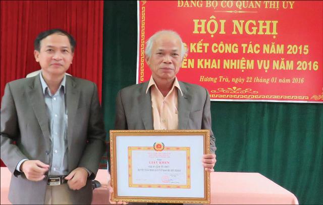 Phó Trưởng Ban Tổ chức Thị ủy Lê Văn Kinh nhận bằng khen của Thị ủy Hương Trà