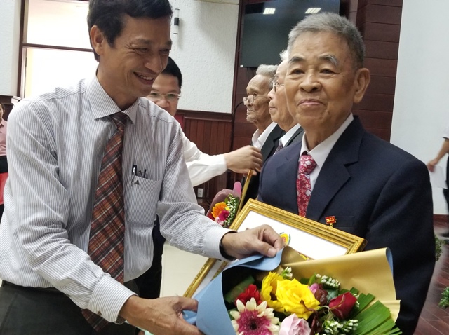 Phó Bí thư Thường trực Thành ủy Huế Nguyễn Xuân Hòa trao tặng Huy hiệu Đảng cho các đảng viên trên địa bàn TP. Huế trong năm 2019
