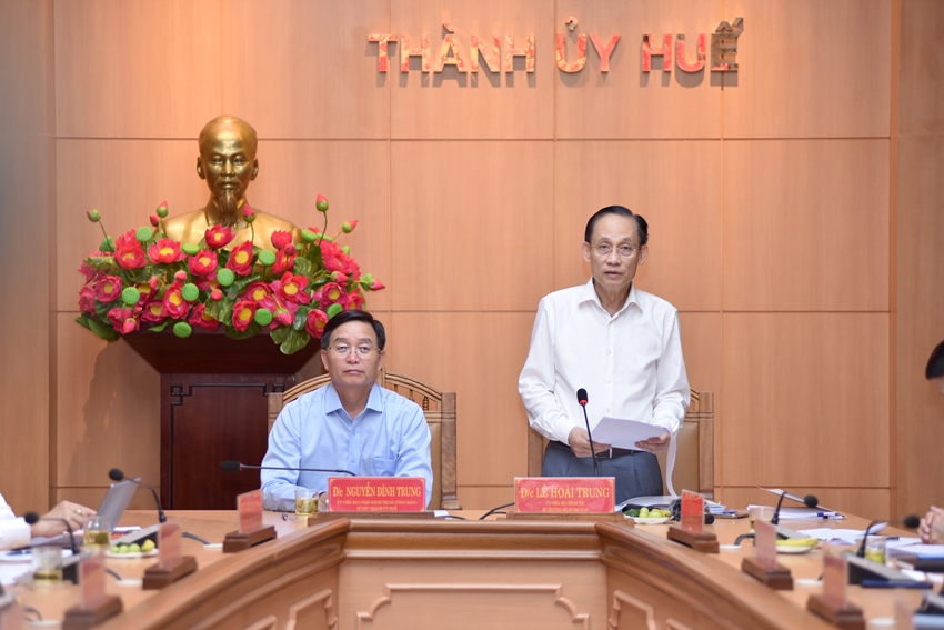 Kết luận buổi làm việc, đồng chí Lê Hoài Trung đề nghị Ban Thường vụ Thành ủy Huế phân công một cơ quan làm đầu mối thường trực, cử một đồng chí lãnh đạo trực tiếp phối hợp với Đoàn trong suốt quá trình kiểm tra, giám sát. Đồng thời, rà soát, hoàn thiện báo cáo, bảo đảm trung thực, khách quan, phản ánh đúng thực trạng; chỉ rõ khó khăn, vướng mắc và đề xuất giải pháp cụ thể, gửi về đoàn đúng thời hạn.