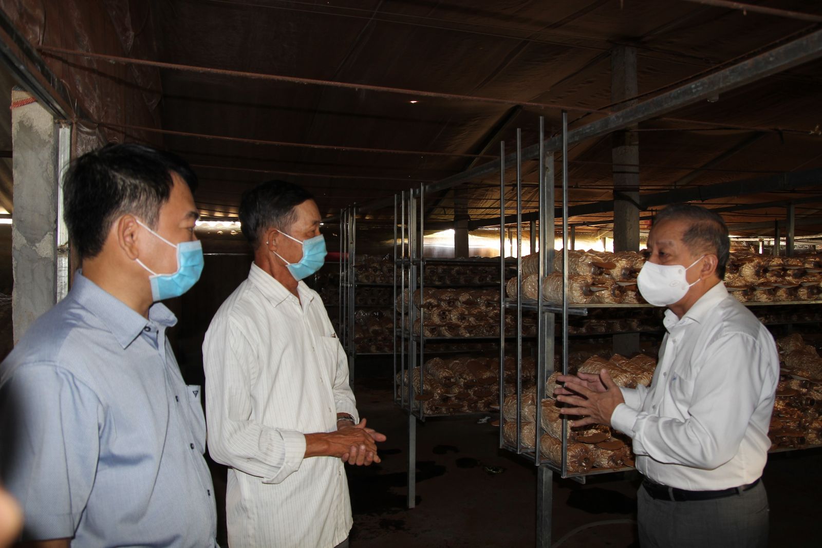 Phó Bí thư Thường trực Tỉnh uỷ Phan Ngọc Thọ (ngoài cùng bên phải) thăm một hộ nông dân ở Quảng Điền