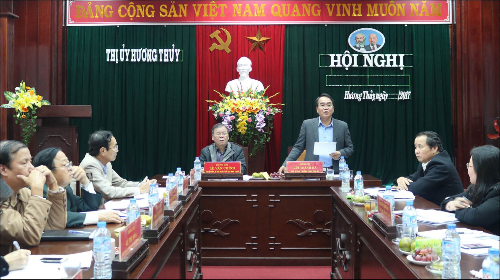 Tinh thần trên được Phó Bí thư Thường trực Tỉnh ủy Bùi Thanh Hà quán triệt và nhấn mạnh với Ban Thường vụ (BTV) Thị ủy Hương Thủy về kết quả thực hiện nhiệm vụ năm 2017 và kế hoạch công tác năm 2018 .