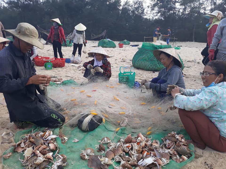 Ngư dân xã Vinh Thanh thu hoạch hải sản đánh bắt được