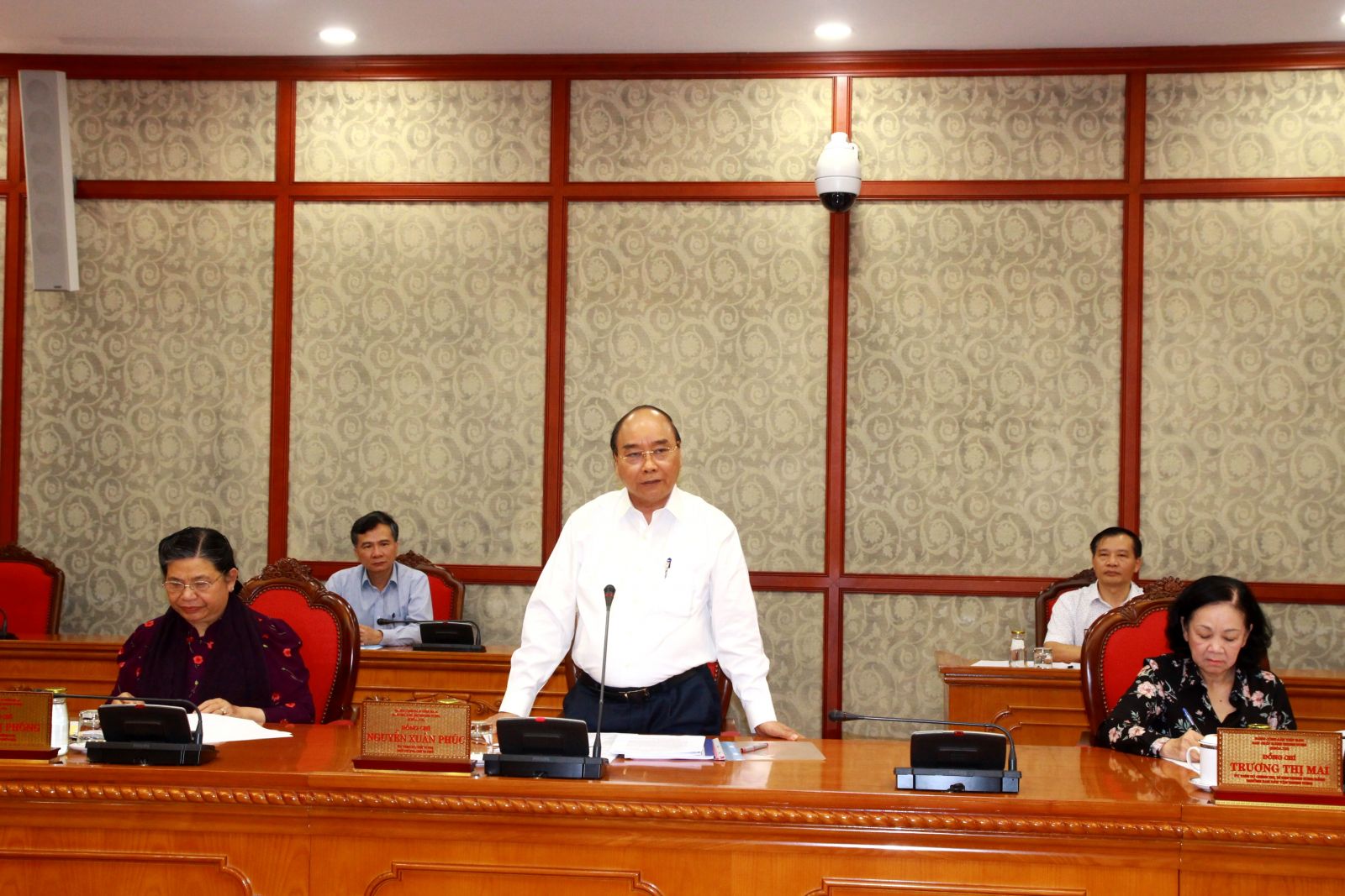 Ủy viên Bộ Chính trị, Thủ tướng Chính phủ Nguyễn Xuân Phúc chủ trì buổi làm việc. Cùng làm việc còn có Ủy viên Bộ Chính trị, Phó Chủ tịch Thường trực Quốc hội Tòng Thị Phóng; Ủy viên Bộ Chính trị, Bí thư Trung ương Đảng, Trưởng ban Dân vận Trung ương Trương Thị Mai; các đồng chí trong Bộ Chính trị, Ban Bí thư và các bộ, ban, ngành liên quan.