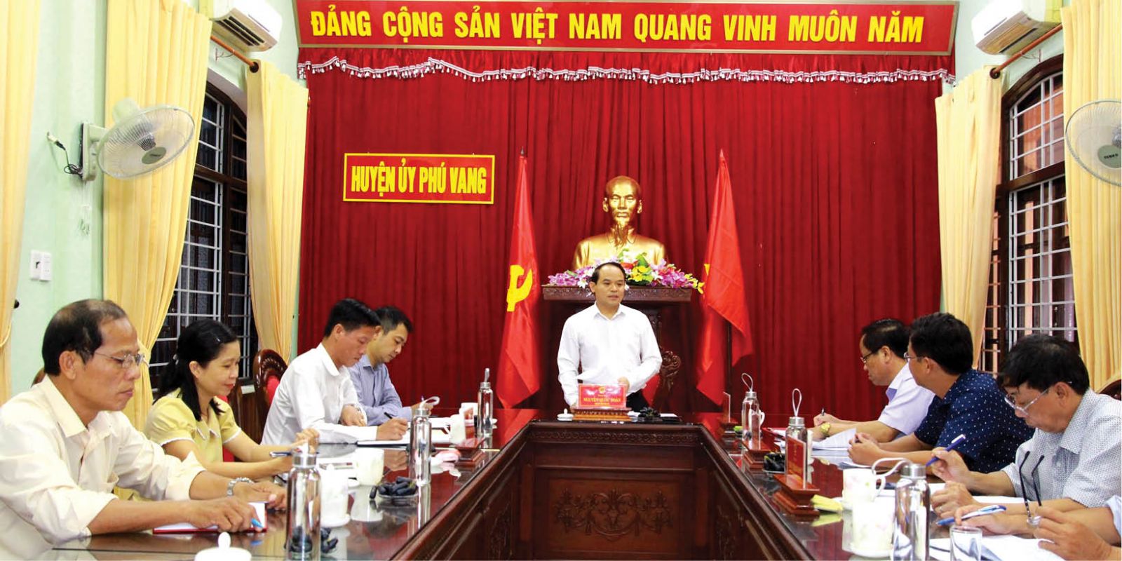 Phó Bí thư Thường trực Tỉnh ủy Nguyễn Quốc Đoàn phát biểu chỉ đạo tại buổi làm việc với Đảng bộ huyện Phú Vang về công tác kiện toàn tổ chức Đảng và nhân sự sau Đại hội