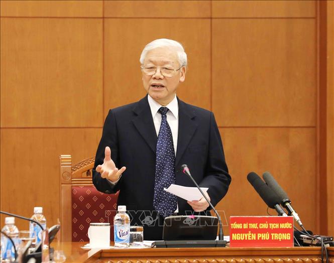 Tổng Bí thư, Chủ tịch nước Nguyễn Phú Trọng, Trưởng Tiểu ban phát biểu tại phiên họp. Ảnh: Phương Hoa/TTXVN
