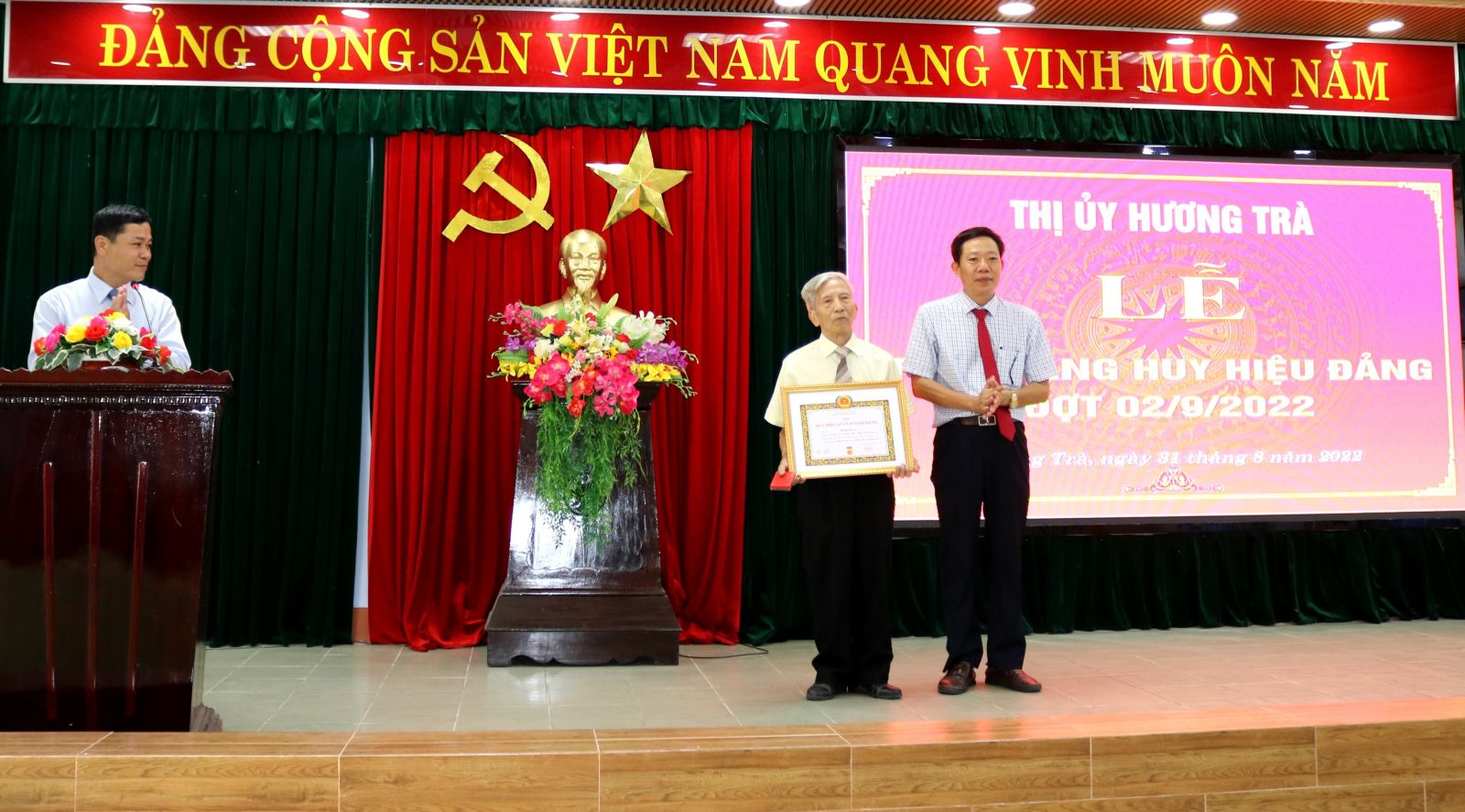Bí thư Thị uỷ Hương Trà Hà Văn Tuấn trao Huy hiệu Đảng cho đảng viên đợt 2/9