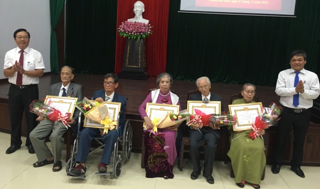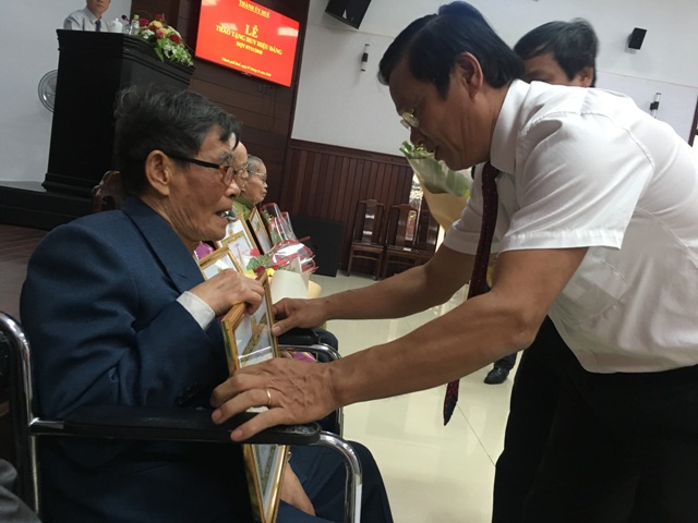 Bí thư Thành ủy Huế Huỳnh Cư trao Huy hiệu 70 năm tuổi Đảng cho các đảng viên