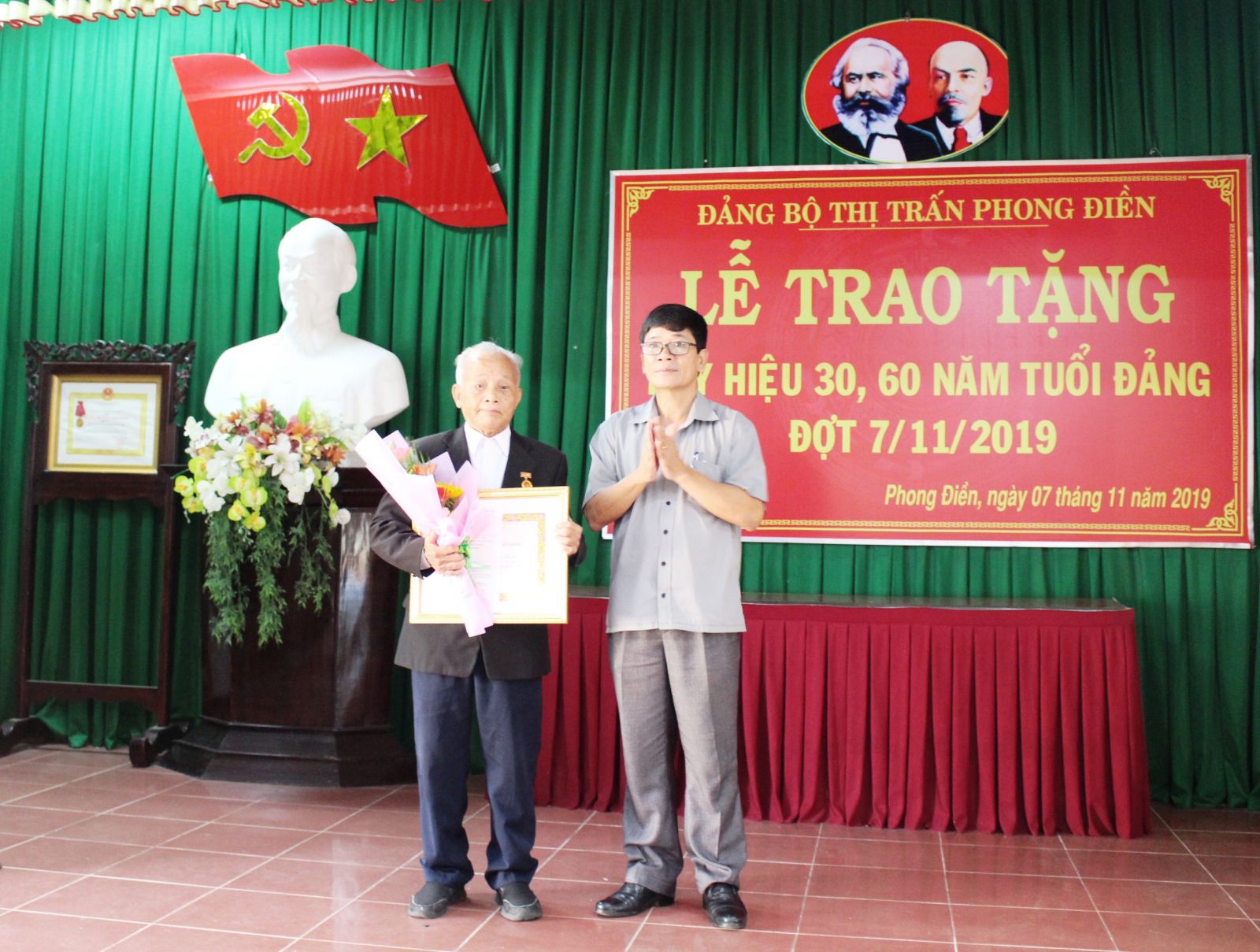 Đại diện lãnh đạo Huyện ủy Phong Điền trao Huy hiệu 60 năm tuổi Đảng cho Đảng viên