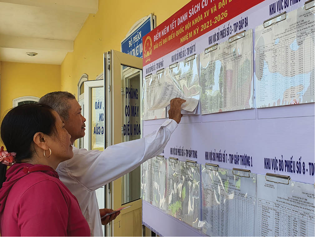 Người dân Hương Văn nghiên cứu danh sách cử tri tại trụ sở UBND phường