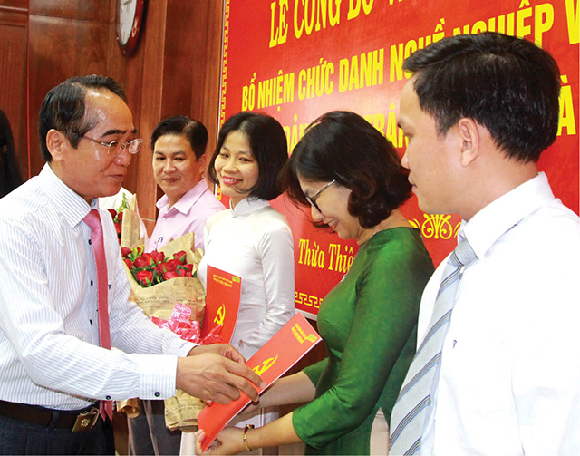 Phó Bí thư Thường trực Tỉnh ủy Bùi Thanh Hà trao quyết định bổ nhiệm các chức danh cho đội ngũ cán bộ của tỉnh