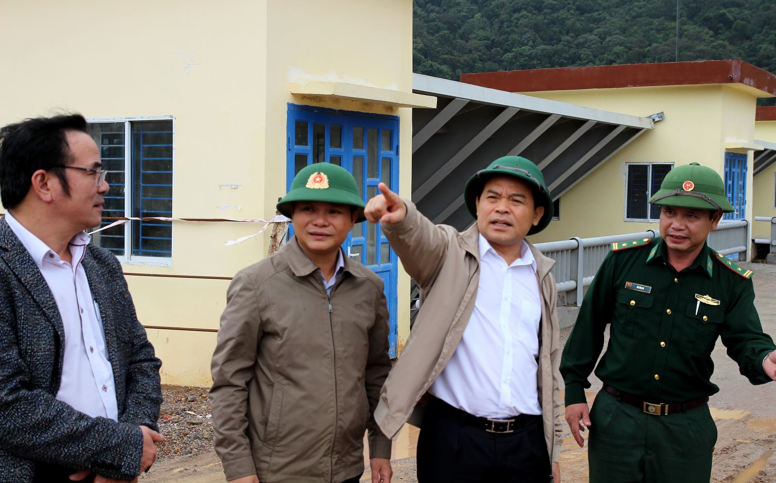 Phó Bí thư Tỉnh ủy Nguyễn Quốc Đoàn (thứ hai từ phải qua) kiểm tra công trình thủy điện A Lin B3, xã Trung Sơn (A Lưới)