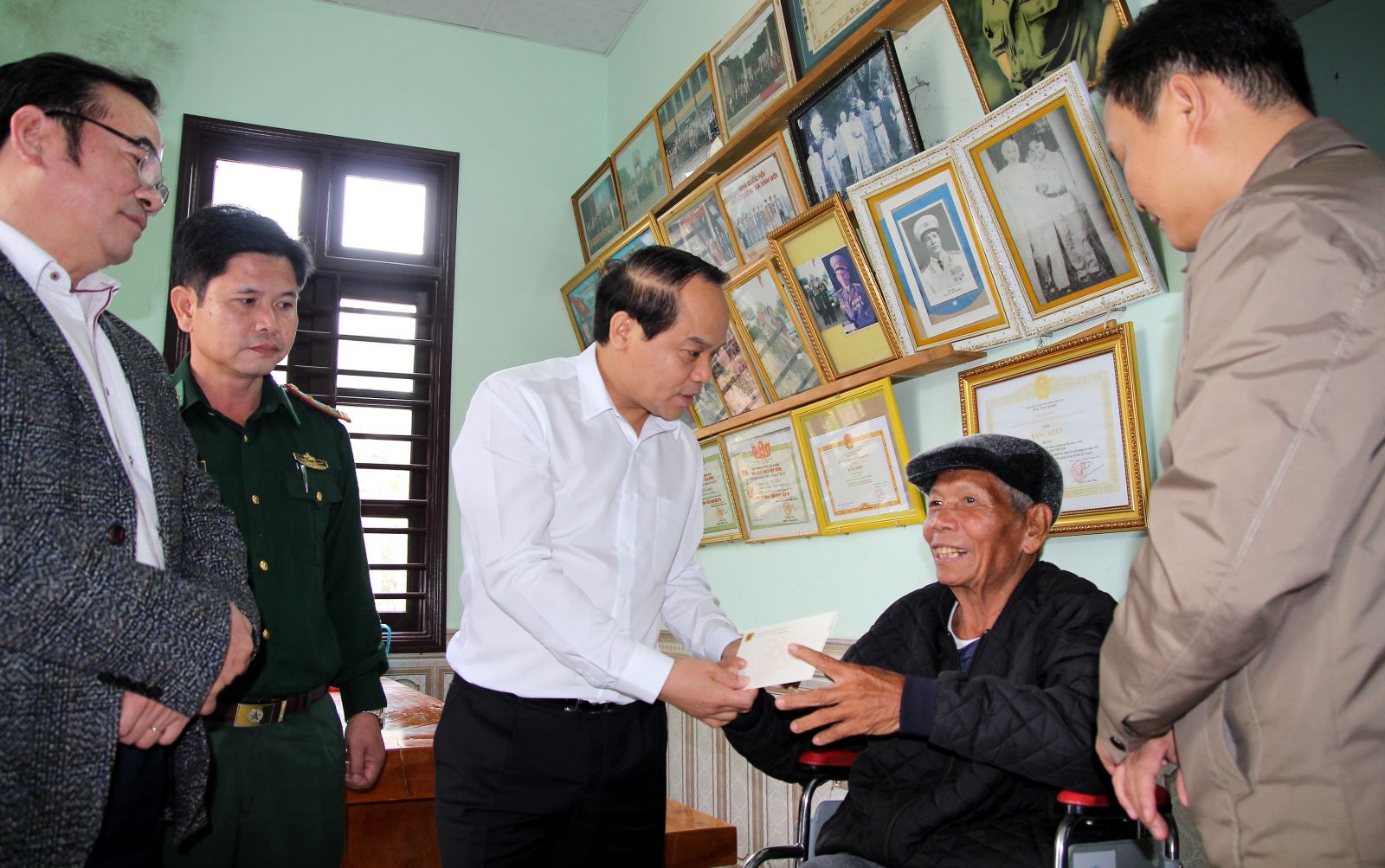 Phó Bí thư Tỉnh ủy - Nguyễn Quốc Đoàn tặng quà, chia sẻ với Anh hùng Lực lượng vũ trang Nhân dân Hồ Vai