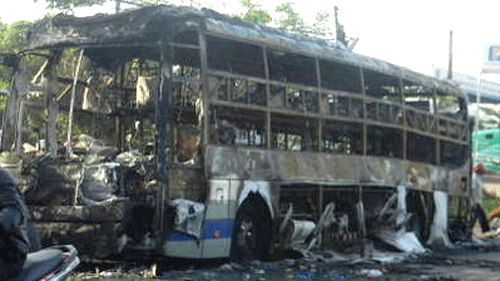 Xe khách bốc cháy dữ dội, 30 hành khách hoảng loạn