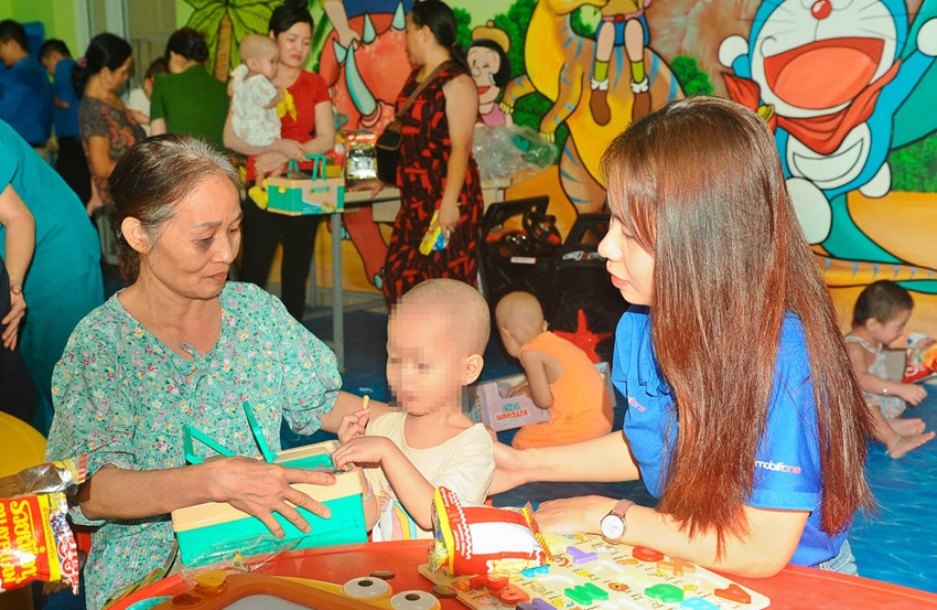 Bệnh nhi và người nhà tham gia khu vui chơi và học tập “Không gian cho em” tại khoa Xạ trị 2, Bệnh viện Trung ương Huế