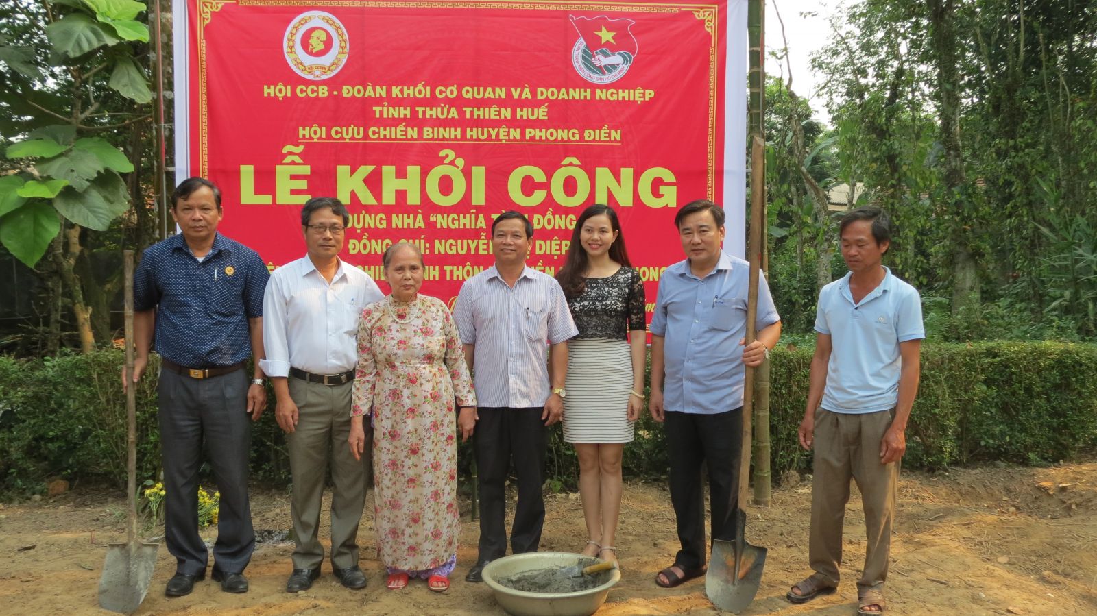 HNN.VN - Hướng tới kỷ niệm 30 năm ngày thành lập Đảng bộ Khối cơ quan và doanh nghiệp tỉnh (12/7/1989-12/7/2019), ngày 21/3, Hội Cựu Chiến binh (CCB) Đoàn Khối các cơ quan và Doanh nghiệp tỉnh phối hợp với huyện Phong Điền tổ chức lễ khởi công nhà “Nghĩa tình đồng đội” cho hội viên cựu chiến binh Nguyễn Thị Diệp, thôn Lưu Hiền Hòa, xã Phong Mỹ.