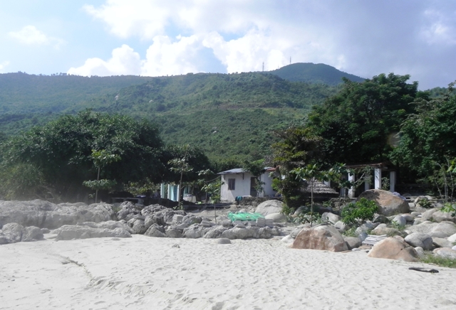Từ Trạm Quản lý rừng thuộc Ban Quản lý rừng phòng hộ Bắc Hải Vân, chúng tôi được cán bộ kiểm lâm chỉ đường đến công trình xây dựng trái phép tại mũi Cửa Khẻm.