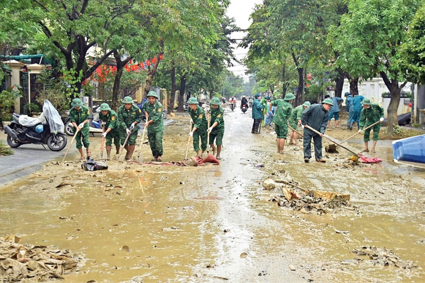 | Tuổi trẻ BĐBP thành phố tham gia khắc phục sau mưa lũ vừa qua. Ảnh: BĐBP |