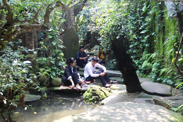 Không gian thứ ba là dòng suối nhân tạo với những hòn đá nhô cao giữa màu xanh của cây cối. Sẽ rất thú vị nếu mùa hè, bên ly cà phê, nghe tiếng suối róc rách, tiếng chim hót cùng ngắm cảnh vật nên thơ. Du khách đến đây có thể nghỉ ngơi thư giãn, bước trên những hòn đá, ngâm chân vào dòng suối mát, vui đùa với chim muông, hoa lá chẳng khác gì cảnh vật thiên nhiên ở núi rừng.