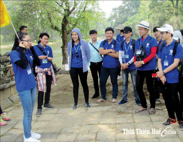 Sinh viên Trường cao đẳng Du lịch Huế trong buổi thực tế nghề hướng dẫn viên
