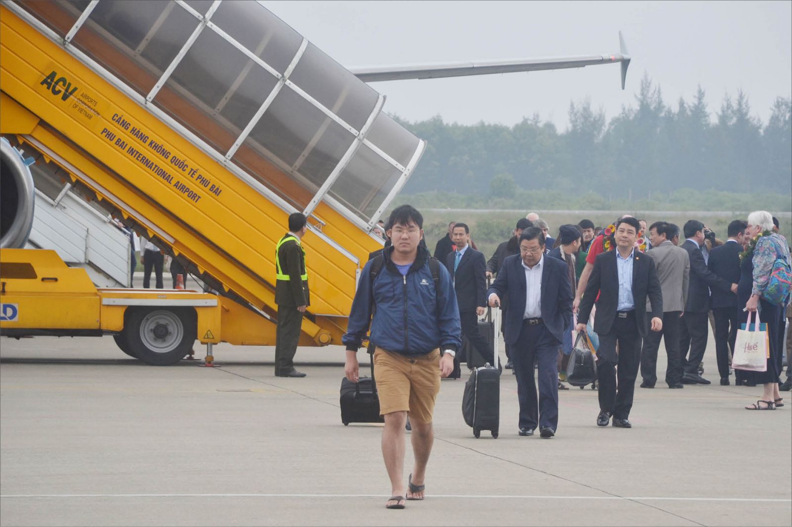 Du khách đến Huế qua Cảng Hàng không Quốc tế Phú Bài. Ảnh: Đức Quang