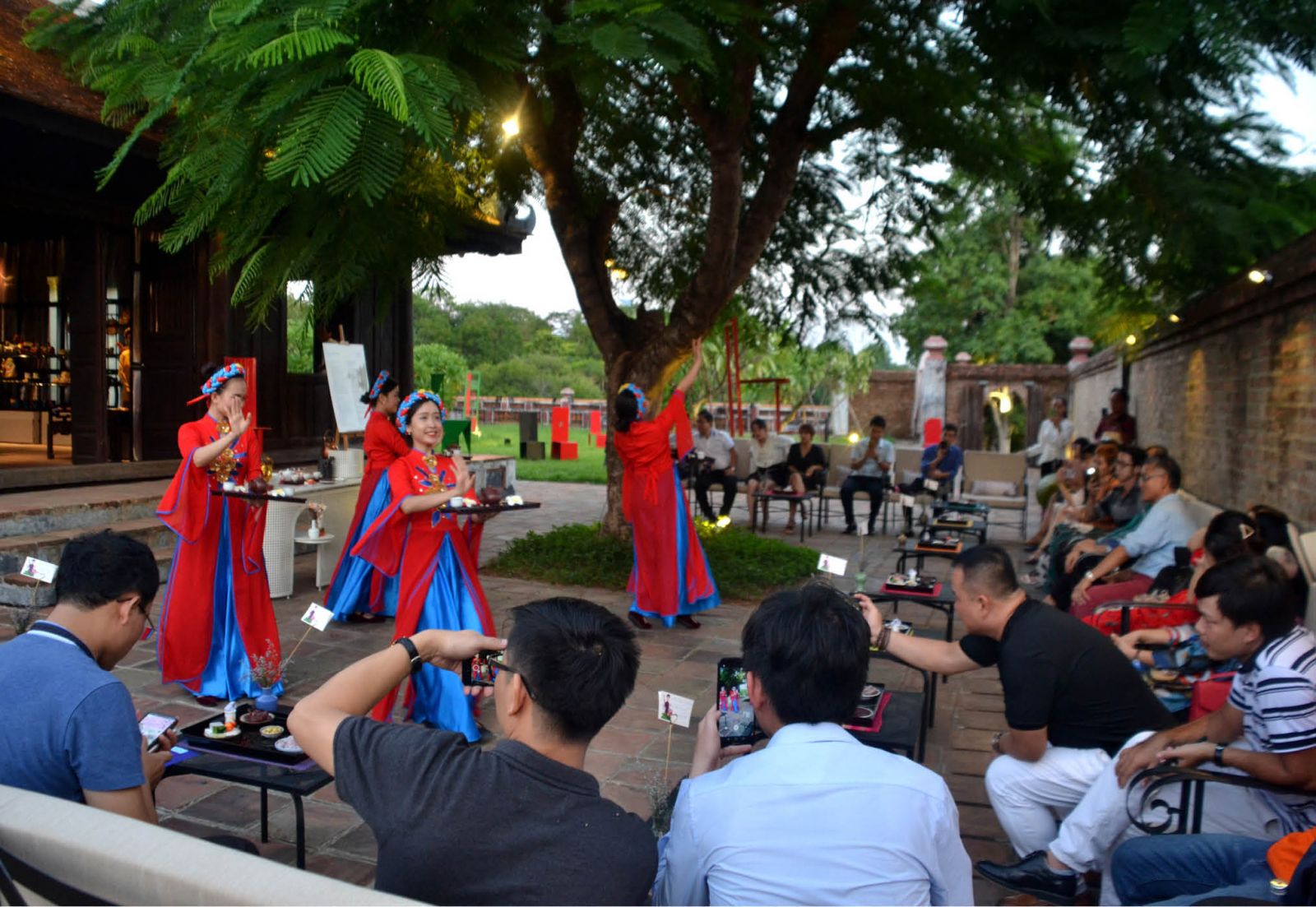 Du khách thưởng thức dịch vụ mới ở Đông Khuyết Đài (Ảnh chụp trước thời điểm bùng phát trở lại COVID-19)