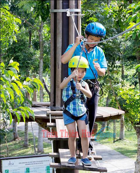 Hệ thống trò chơi mạo hiểm ở khu nghỉ dưỡng Thanh Tân luôn được kiểm tra thường xuyên