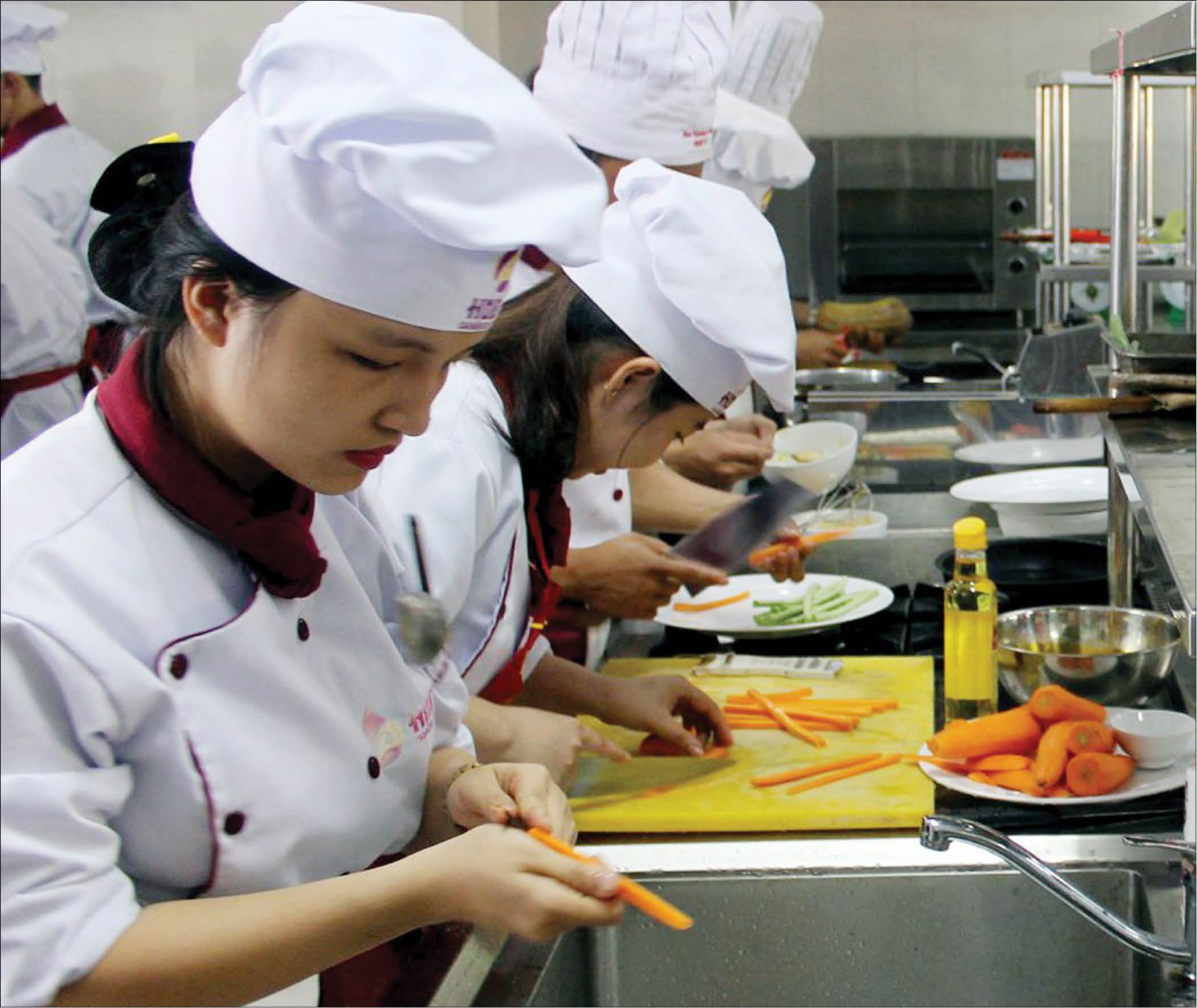 Sinh viên Trường cao đẳng Du lịch Huế trong tiết thực hành