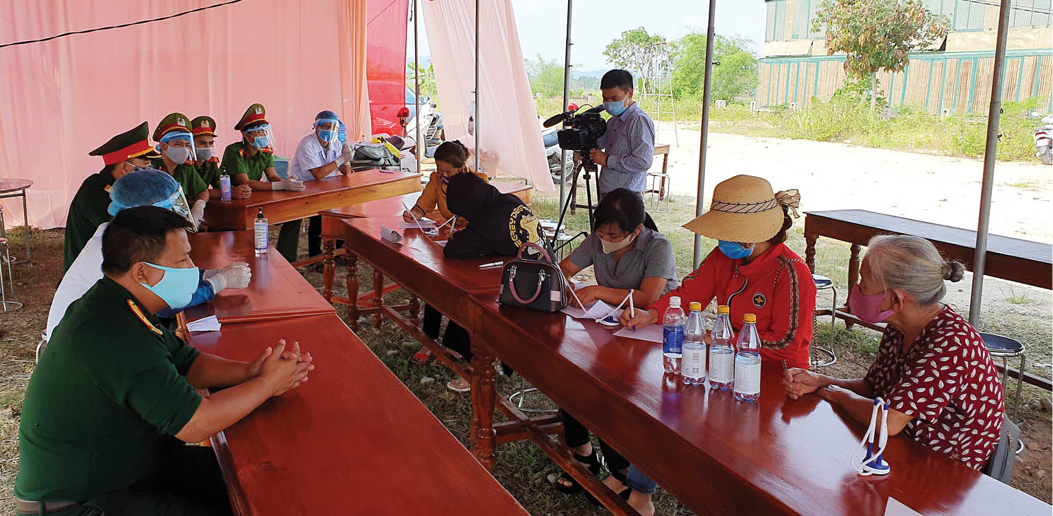 Phóng viên Báo Thừa Thiên Huế tác nghiệp tại trạm kiểm soát COVID-19 ở thị xã Hương Trà
