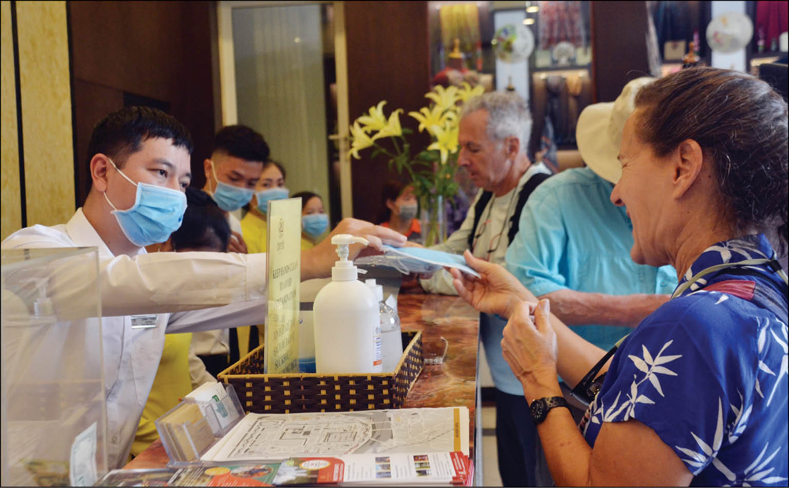 Các khách sạn ở Huế duy trì tốt việc phát khẩu trang cho khách và cung cấp dung dịch sát khuẩn