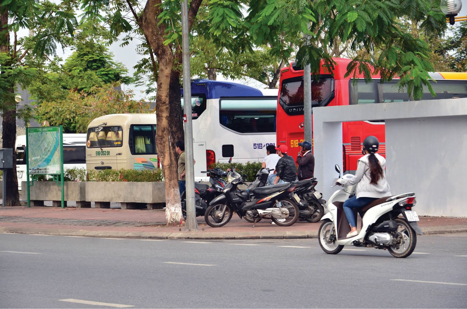 Để nhanh chóng đưa lái xe từ các cửa hàng đến điểm đỗ khách, các đối tượng không mũ bảo hiểm, chạy vào đường cấm là Đinh Công Tráng (đoạn Công viên Đinh Công Tráng), đường Đoàn Thị Điểm, đường 23 Tháng 8. Ngoài ra, để quay trở lại Bến xe Nguyễn Hoàng một cách nhanh nhất để tiếp tục tìm kiếm “con mồi”, các đối tượng này phóng nhanh, vượt ẩu, chạy ngược chiều ra hai hướng Cửa Ngăn và Quảng Đức.