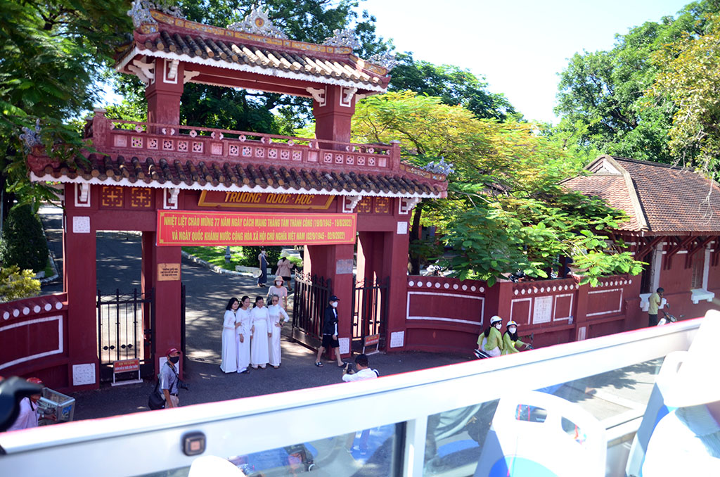 Xe đi qua Trường Quốc học, ngôi trường nổi tiếng nơi Bác Hồ từng theo học