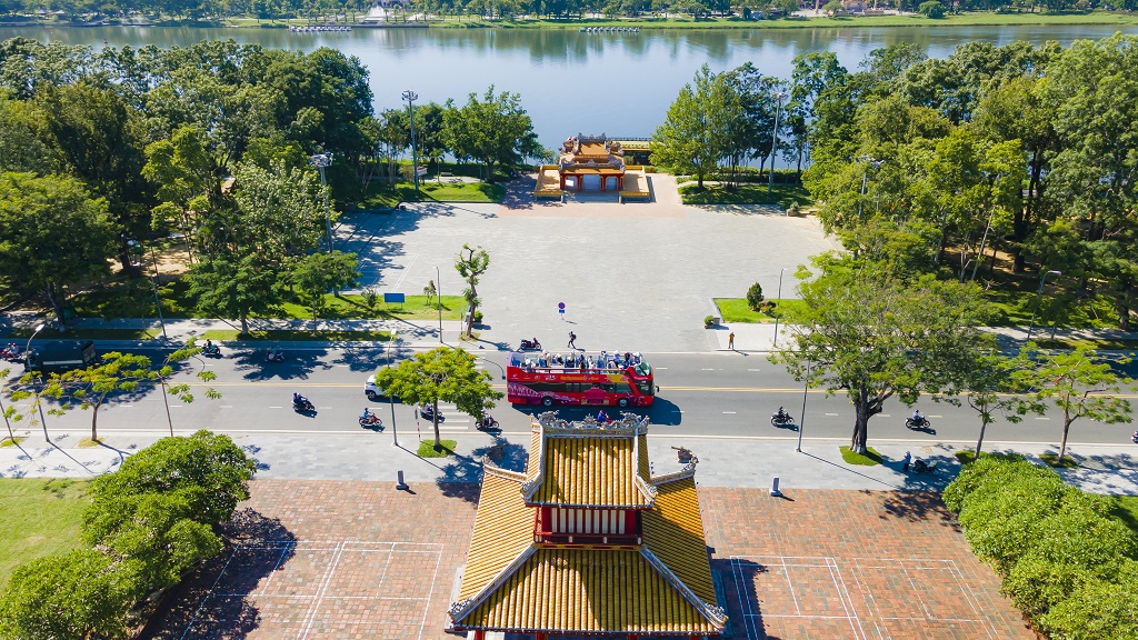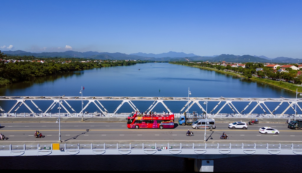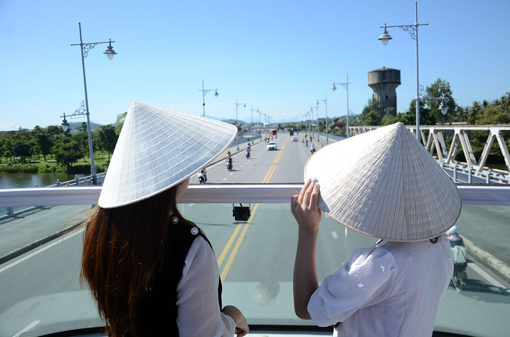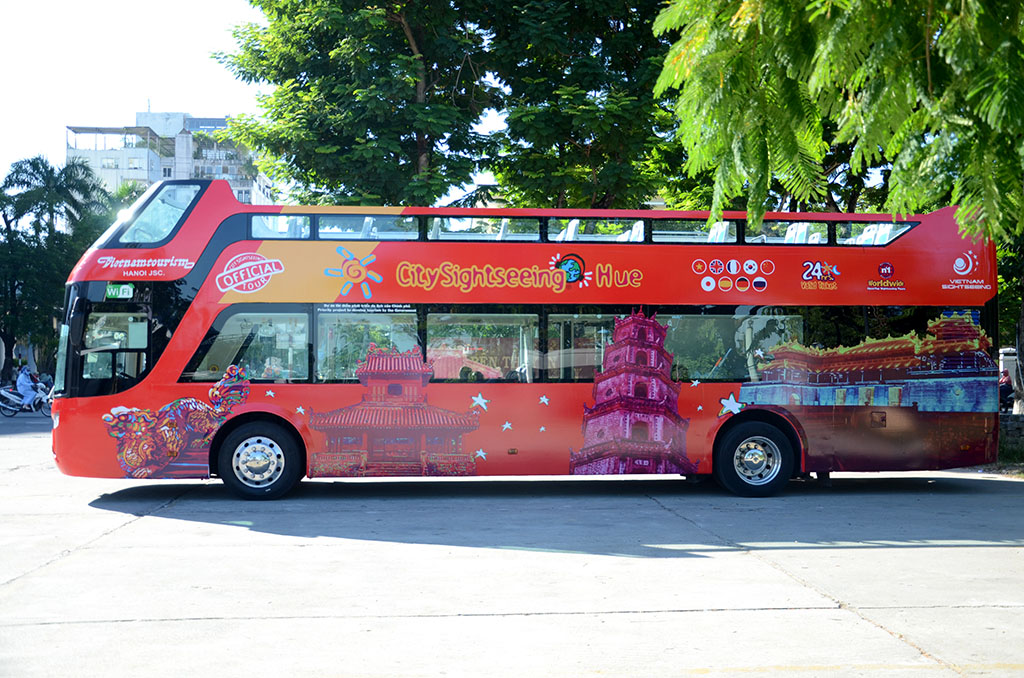 Xe buýt hai tầng thoáng nóc là sản phẩm du lịch mới lần đầu được khai thác ở Huế