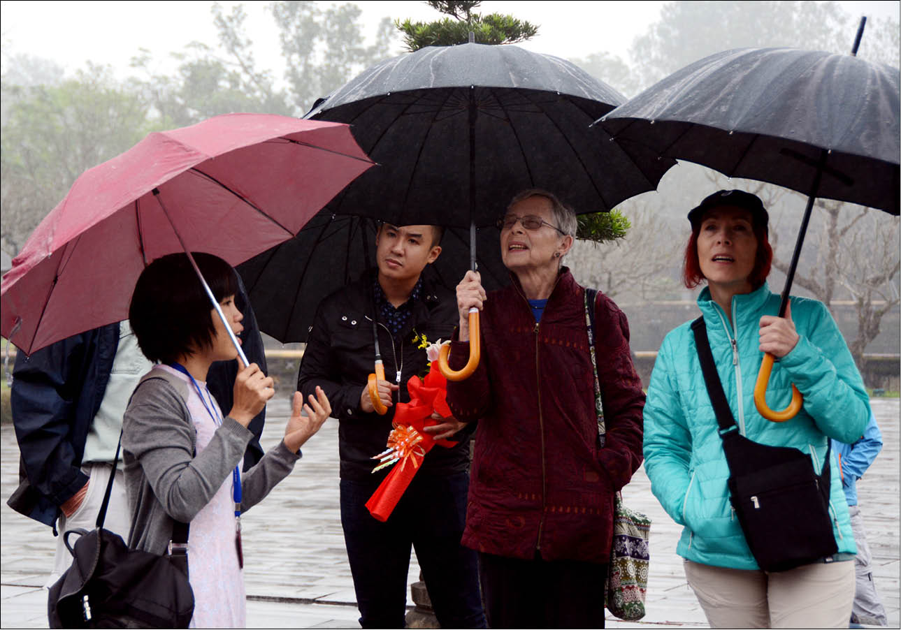 Huế cần có thêm những sản phẩm đột phá để bổ sung thêm cho di sản (Du khách tham quan Đại Nội ngày mưa)