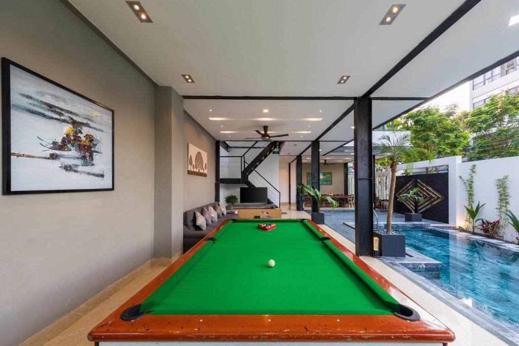 Tại căn villa Đà Nẵng này, bạn có thể sử dụng nhiều tiện ích ngoài trời như bể bơi, bi-a, BBQ, tổ chức sự kiện hay cùng bạn bè tản bộ ra bãi biển xinh đẹp chỉ cách 5-10 phút.