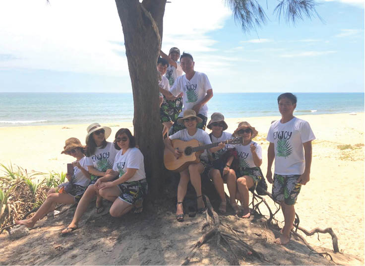 Không ngờ, Chủ tịch UBND xã nãy giờ ngồi bàn kế bên, anh chủ động sang làm quen và nói lời cảm ơn vì chúng tôi đã chọn biển Vinh Xuân để họp lớp. “Đây như lời động viên để địa phương mạnh dạn quảng bá với du khách về một điểm đến hấp dẫn”. Anh tự tin nói.