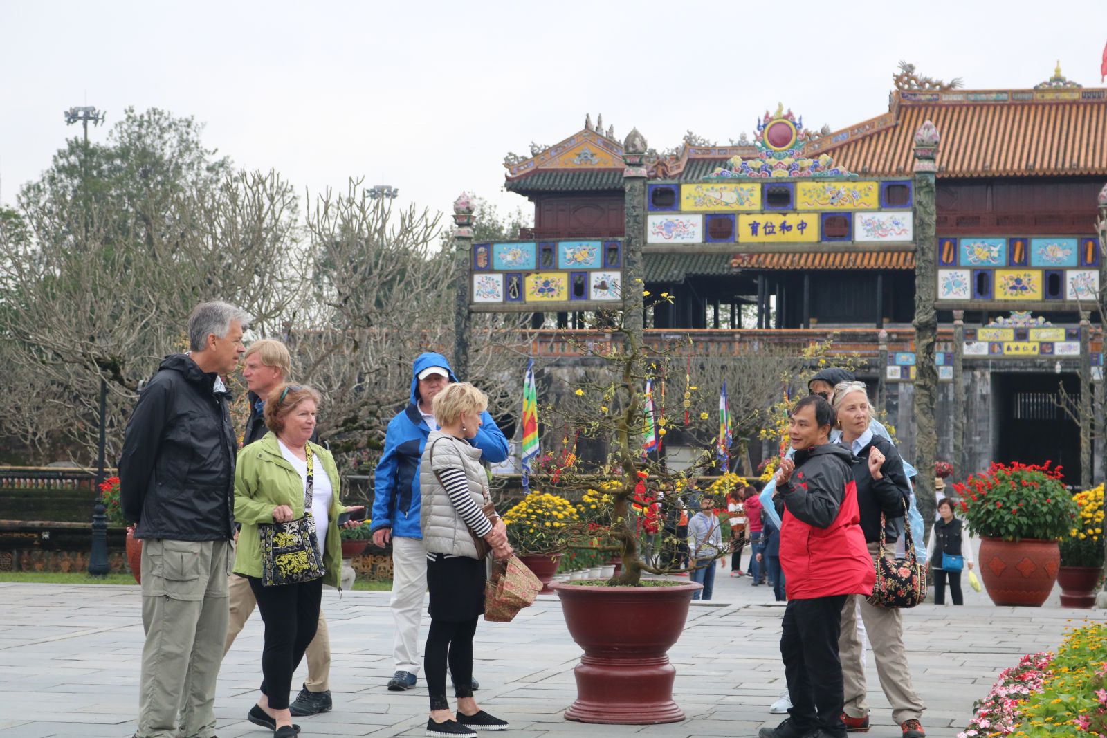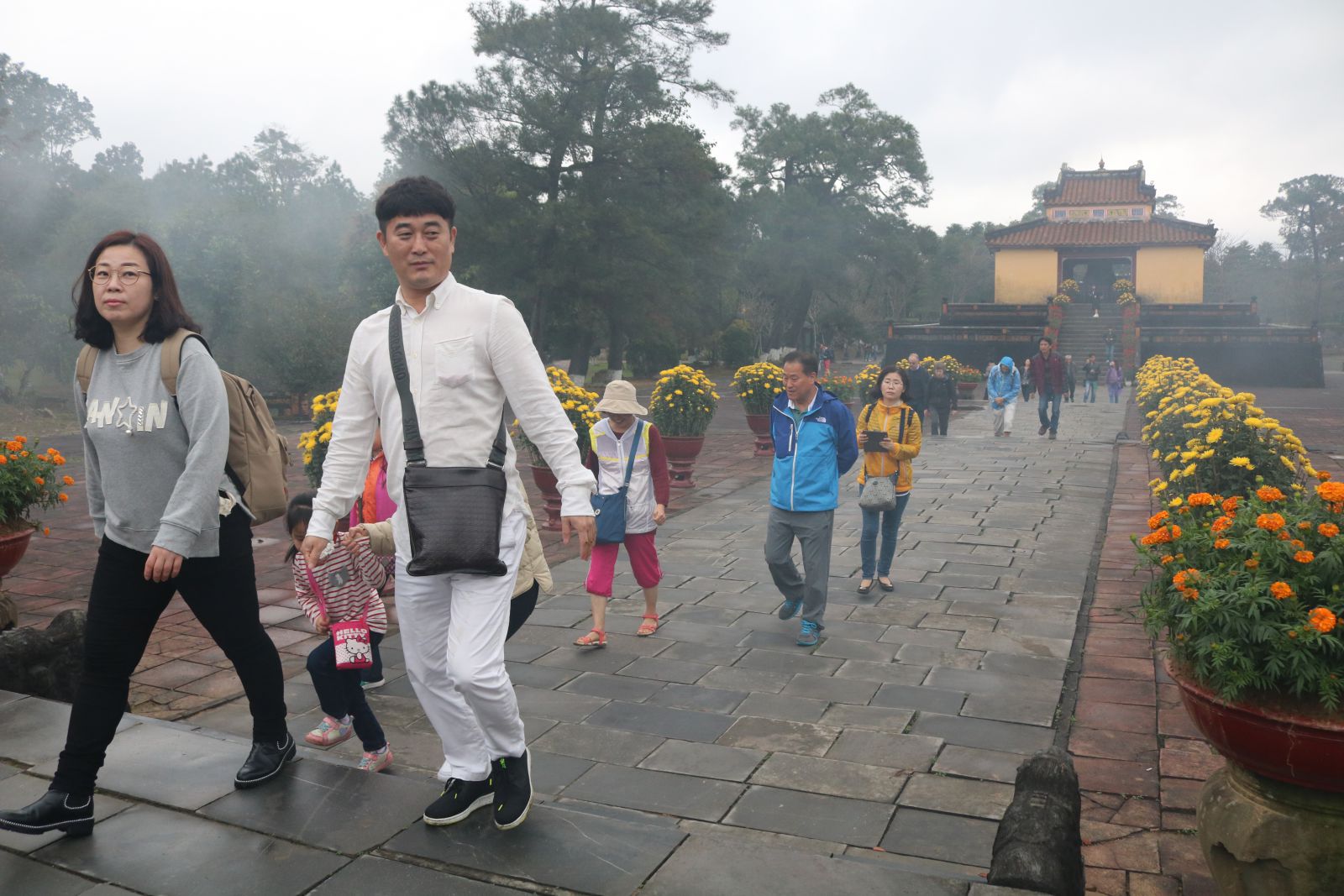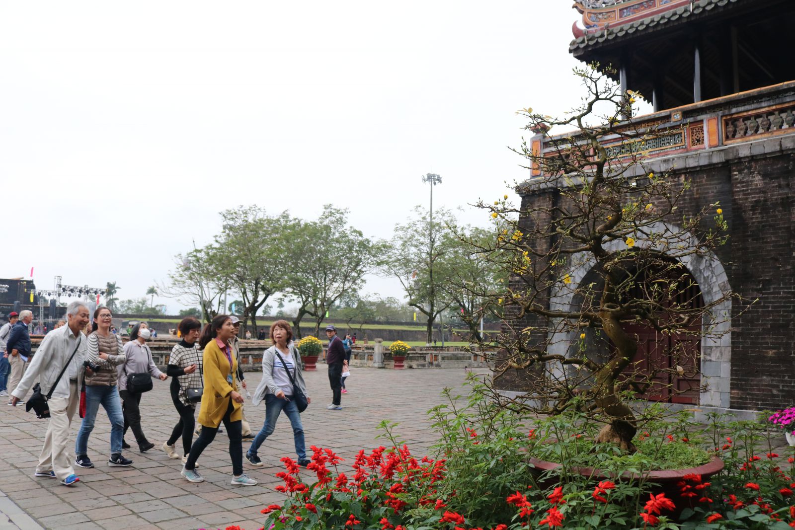 Những ngày cận Tết Nguyên đán, du khách thăm khu di sản Huế không quá đông và chủ yếu là khách quốc tế. Qua những ngày đầu tiên của năm mới, trong ba ngày từ mồng 1 đến mồng 3 Tết, khi tất cả các điểm di tích thuộc Quần thể Di tích Cố đô Huế được mở cửa miễn vé đối với khách nội địa, lượng khách vào tham quan và du xuân tại khu di sản Huế sẽ tăng đột biến.