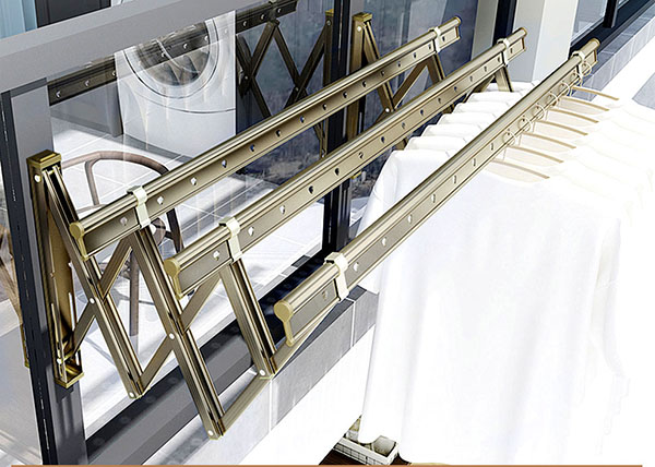 Đây là loại giàn phơi dạng thanh thông minh có thể gấp hoặc kéo thành từng đoạn 360 độ một cách linh hoạt. Giá đỡ giàn phơi được cố định chắc chắn vào tường, trên thanh phơi có các lỗ hoặc móc để treo quần áo.
