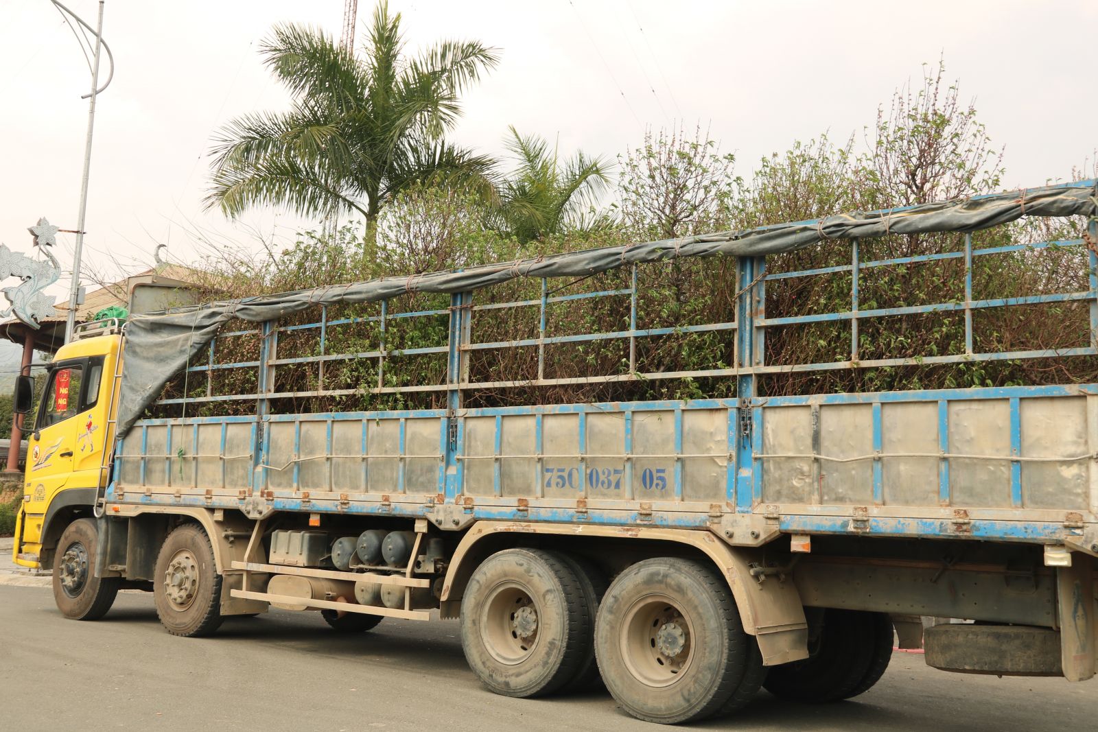 Xe chở các cây đào kêu gọi được để thực hiện ý tưởng trồng vườn đào ở vùng cao