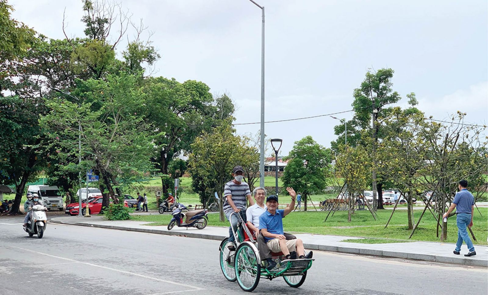 Xích lô chở khách du lịch tham quan Hoàng thành. Ảnh: D. Trương