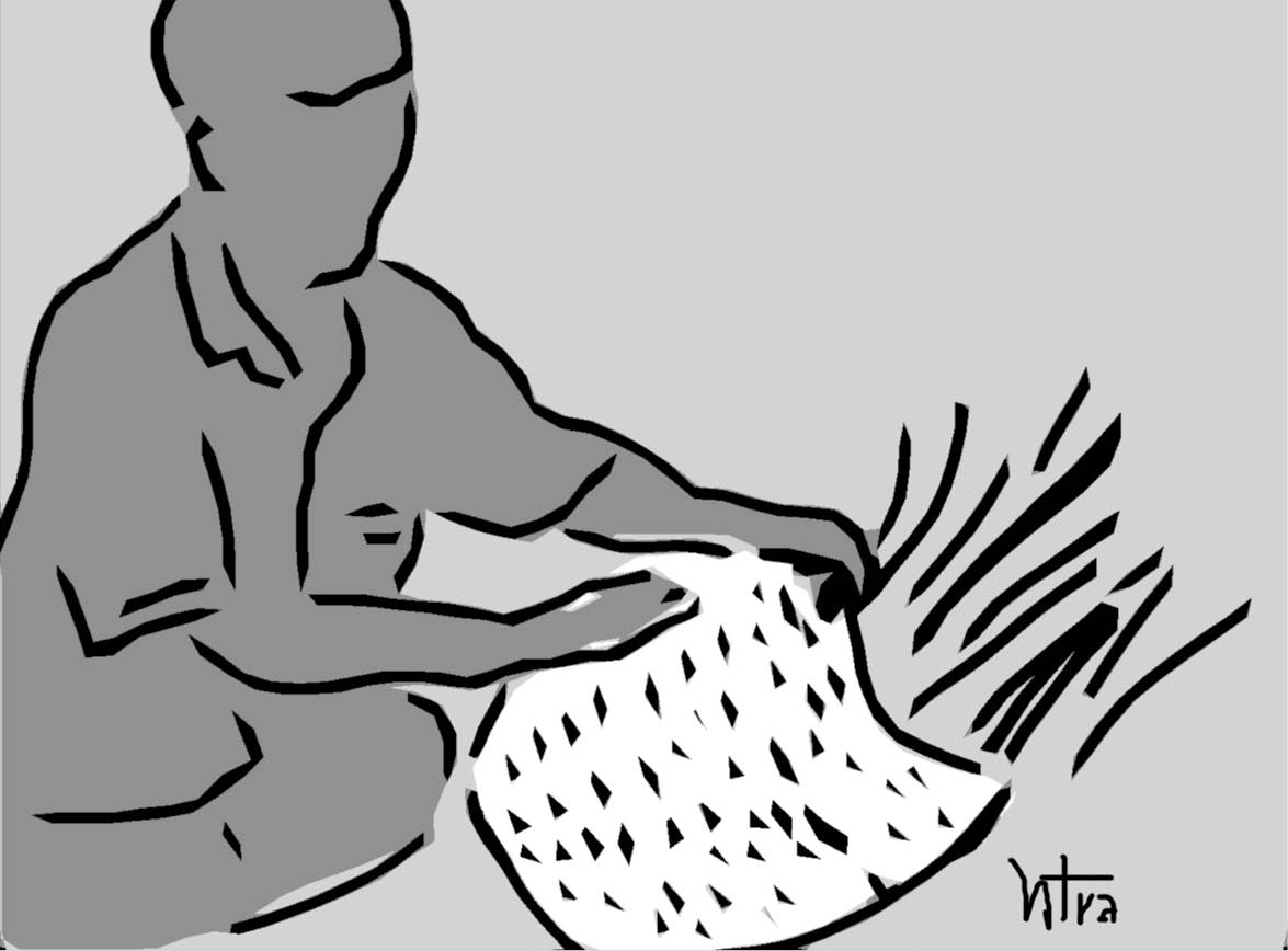 Những lúc nhàn rỗi, ông vẫn thường ra vườn chặt tre, vườn nhà tôi rộng và được bao bọc bởi những rặng tre, lồ ô ken kín chung quanh. Ông chăm chỉ cưa, chẻ và đan thành những chiếc rá, rổ và chiếc lồng ấp là một trong những sản phẩm ra đời từ đôi bàn tay tỉ mẩn của ông.