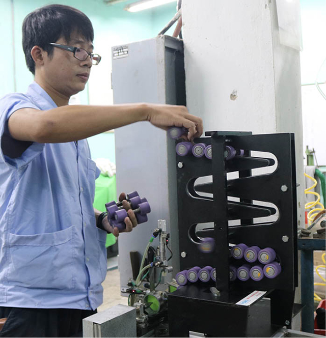 Anh Phương cho biết, các máy kéo sợi con của dây chuyền sản xuất sợi tại công ty có hơn 150.000 suốt cao su các loại; trong đó 1 suốt cao su được cấu tạo gồm trục giữa và 2 đầu là vòng bi đòn gánh. Công việc bảo dưỡng thường ngày của anh và đồng nghiệp là bơm mỡ cho 2 vòng bi trục suốt, sau đó tiến hành mài lại rồi đưa vào máy chiếu tia UV để xử lý lại bề mặt. Công đoạn này được thực hiện bằng tay với số lượng lớn nên công việc bảo dưỡng rất tốn kém thời gian và công sức.